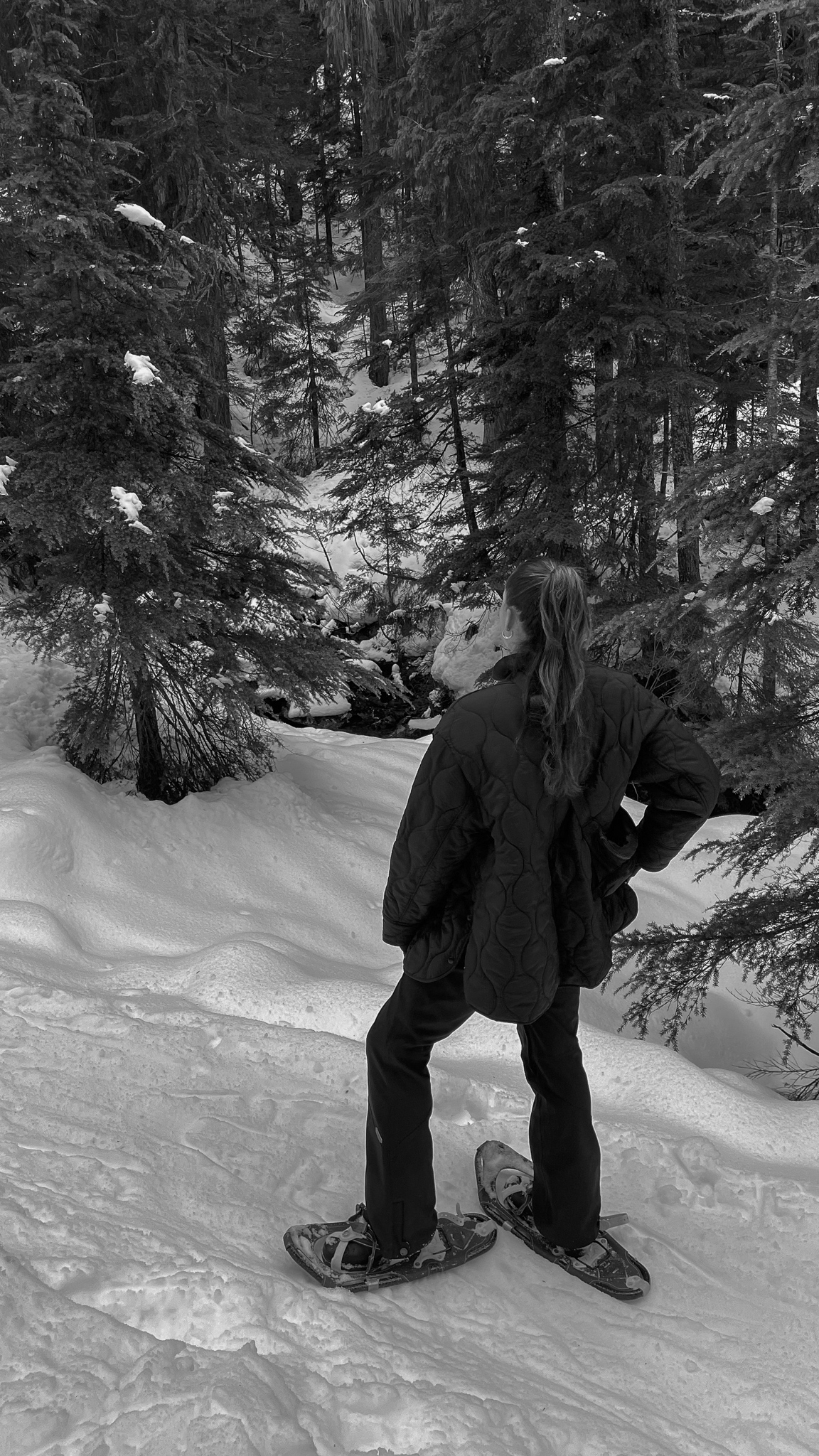 When I go on a snowy hike, I prefer to start with a solid base layer. Recently, I have been drawn to Lululemon’s Align collection, which is made of very comfortable and supportive material that retains more heat than their Wunder Train alternatives.